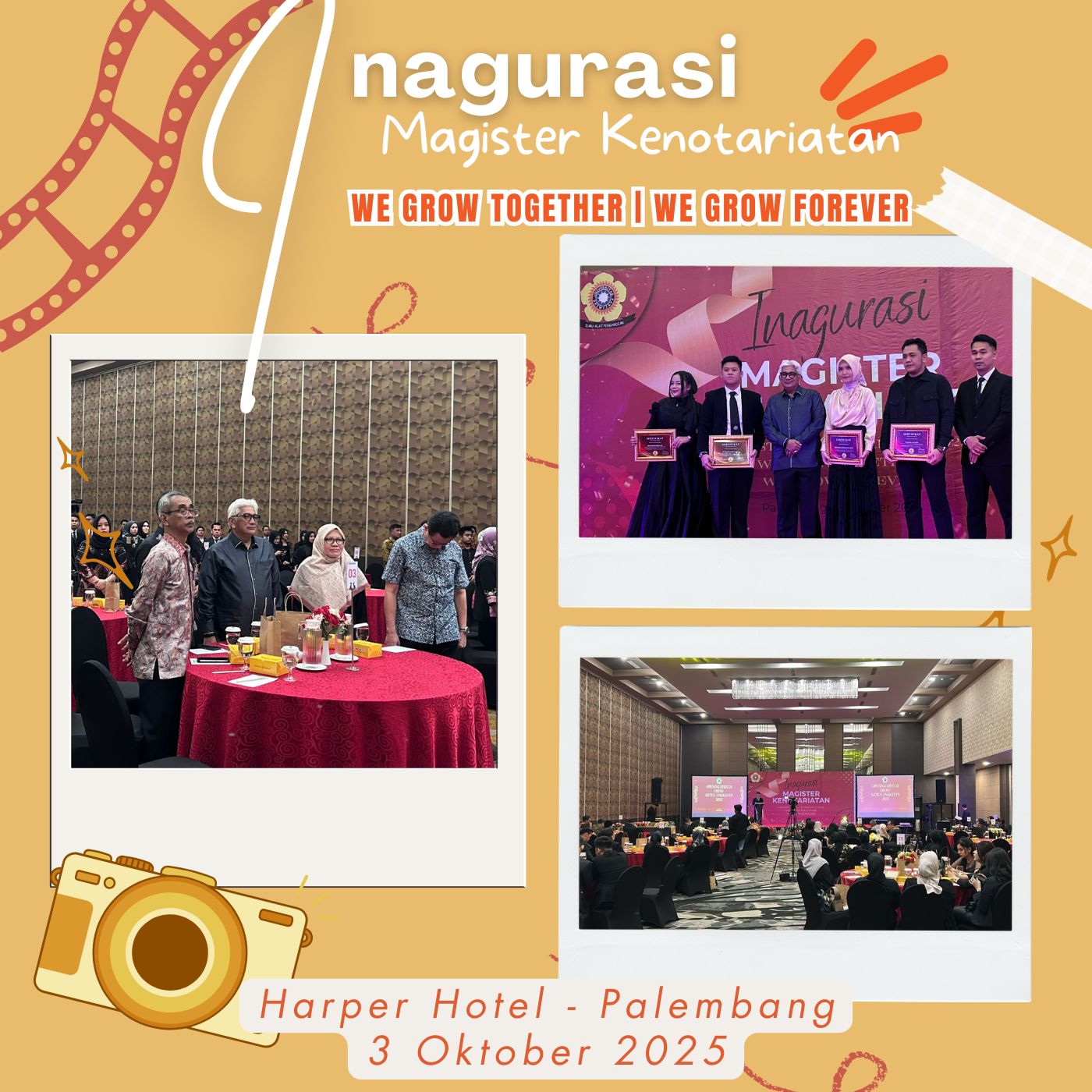 Program Studi Magister Kenotariatan Fakultas Hukum Universitas Sriwijaya sukses menyelenggarakan kegiatan Inagurasi Magister Kenotariatan Tahun 2025 dengan tema “We Grow Together, We Grow Forever”. Acara berlangsung meriah pada Jumat, 3 Oktober 2025 bertempat di Harper Hotel Palembang, dengan dihadiri mahasiswa baru angkatan 2025, dosen, serta tamu undangan.